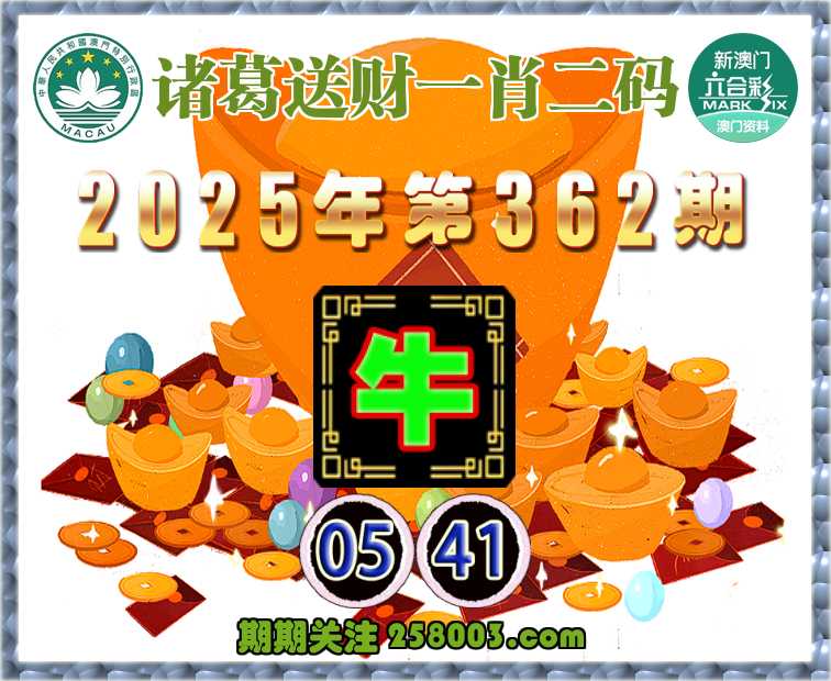 362期:『诸葛送财』 🍏一肖二码🍏【牛】【05.41】开:羊23