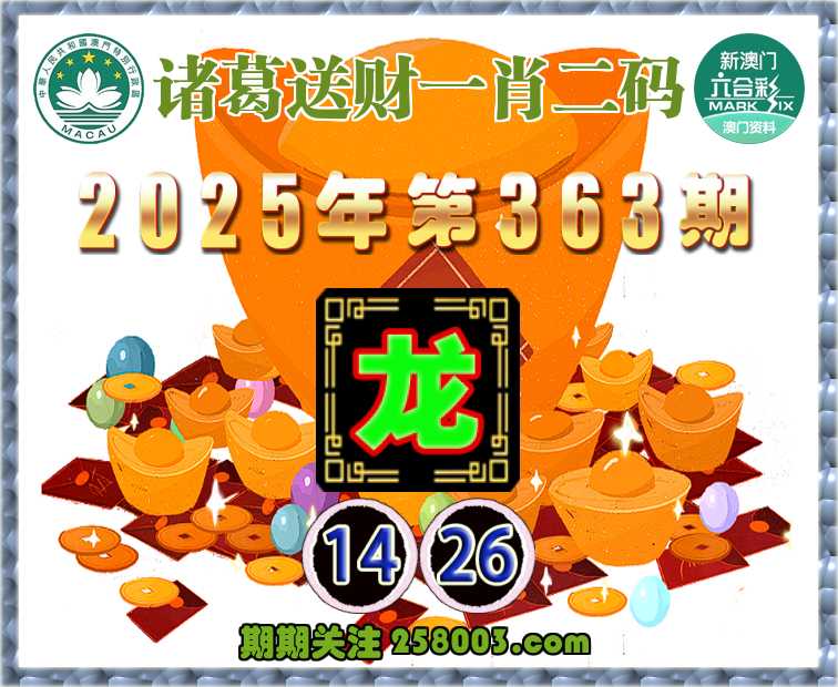 363期:『诸葛送财』 🍏一肖二码🍏【】【14.26】开:龙26准上榜高手