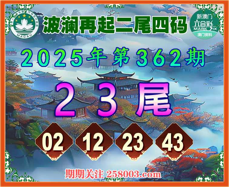 362期:『波澜再起』 🀄二尾四码🀄【23尾主:02.12.23.43】开:23准上榜高手