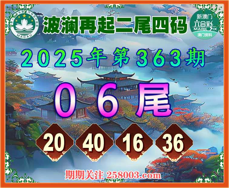 363期:『波澜再起』 🀄二尾四码🀄【06尾主:20.40.16.36】开:26准上榜高手